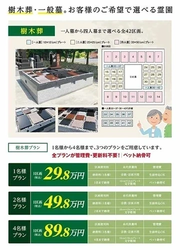 A.仙和メモリアルガーデン 山形飯塚の購入価格の目安は樹木葬19.8万円〜、永代供養墓20.0万円〜です。