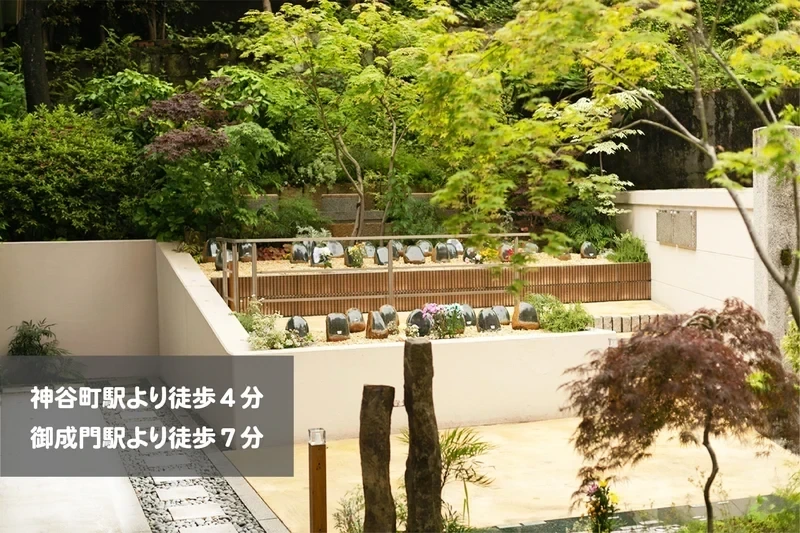 港区虎ノ門にある、芝愛宕の森・光円寺樹木葬は、東京メトロ日比谷線「神谷町駅」3番出口より徒歩4分、都営地下鉄三田線「御成門駅」から徒歩7分、JR「新橋駅」からタクシーで8分の、光円寺の境内にある樹木葬です。駐車場も完備しています。 自動車や公共交通でお参りしやすい樹木葬です。