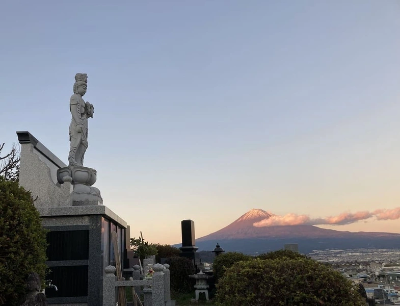 富士山と駿河湾を望む高台に位置しており、自然の雄大さを感じながらお参りができるのが最大の特徴です。境内には早春に約80本の梅が咲き誇る「富士川梅園」もあり、四季折々の豊かな色彩の中で故人を偲ぶことができます。